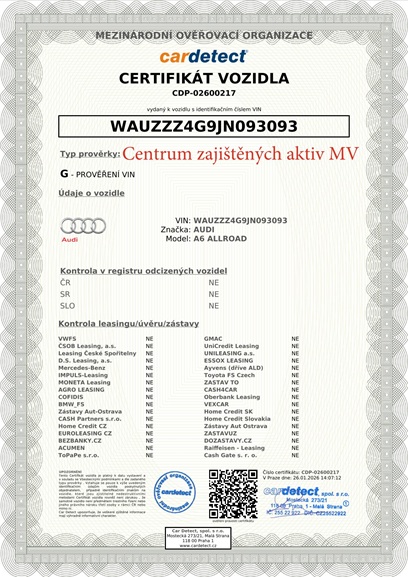 | Vozidlo | AUDI A6 ALLROAD QUATTRO(4GJ0VA) 3.0 biTDI quattro Tiptronic |
