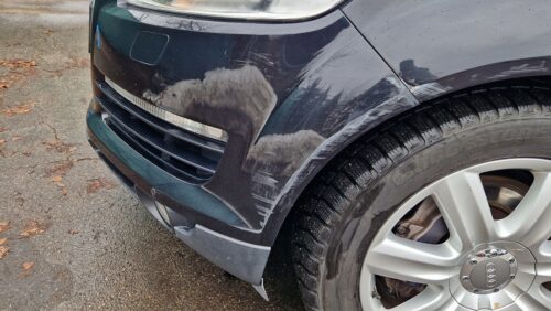 Ojeté, stav odpovídá počtu najetých kilometrů a způsobu užívání vozidla, přední část vozidla posekaná od kamínků, provozní oděrky, poškození laku i barvy a deformace karoserie po celém obvodu vozidla (viz. foto), vozidlo signalizuje závadu regulace podvozku, závadu osvětlení, závadu systému kontroly tlaku v pneumatikách, požadavek na provedení servisní prohlídky a dále vozidlo signalizuje aktivní ruční brzdu i v době uvolnění ruční brzdy, nefunkční systém odpružení zadní nápravy, nadměrná koroze všech brzdových kotoučů, poškozené zadní silentbloky předních spodních ramen, poškozená levá zadní odrazka, uvolněná parkovací čidla v zadním nárazníku, snížená kapacita akumulátoru, drobné poškození čelního skla, únik provozních kapalin, nefunkční plynové vzpěry víka zavazadlového prostoru, uvolněná lišta prahu u řidiče, koroze karoserie a exponovaných míst, poškozené krycí sklo předního levého světlometu, lokálně zašpiněný, poškozený a opotřebovaný interiér (stav viz. foto), poškozené těsnění u pravých zadních dveří, ve vozidle schází kompletní povinná výbava.