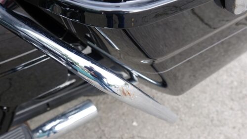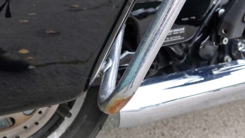 Ojeté, stav odpovídá počtu najetých kilometrů a způsobu užívání, přední část motocyklu posekaná od kamínků, provozní oděrky, poškození laku i barvy a deformace karoserie po celém obvodu motocyklu, (stav motocyklu viz. foto), snížená kapacita akumulátoru, uvolněná opěrka spolujezdce, na motocyklu schází pravý zadní reproduktor, nesvítí levá přední směrová svítilna, poškozený mechanismus předního štítu (viz. foto), větší deformace na levé straně palivové nádrže, odřené ochranné rámy, poškozená vrchní vrstva LCD, chybějící ovládací prvek na pravím řídítku, chybějící prostřední šroub na přední masce, uvolněný kožený potah u zadního levého reproduktoru.