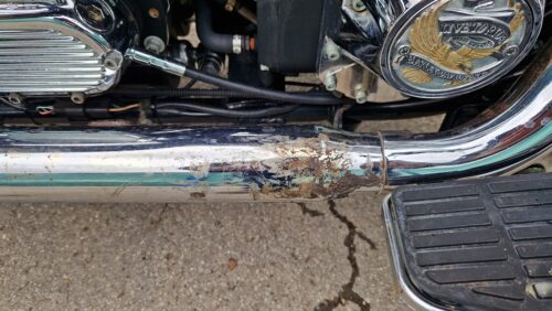 Ojeté, stav odpovídá počtu najetých kilometrů a způsobu užívání motocyklu, přední část motocyklu posekaná od kamínků, drobné provozní oděrky po obvodu motocyklu (viz. foto), k motocyklu nejsou klíče (spínací skříňka na nádrži je odemčená – motocykl lze nastartovat),  snížená kapacita akumulátoru, nesvítí levá zadní směrová svítilna, na výfukovém systému schází některé šrouby, počáteční koroze karoserie a exponovaných míst, opotřebované a deformované kožené brašny, lokální poškození ukazatele najetých mil (viz. foto), zašpiněný přední výfuk, poškozené zapínání kožené kapsy na opěrátku spolujezdce, v motocyklu schází kompletní povinná výbava.