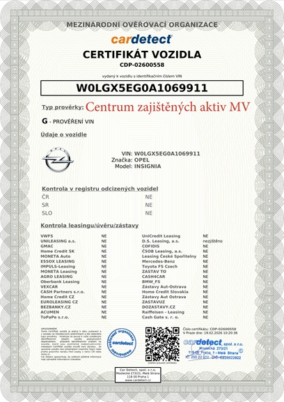 | Ostatní informace | Automobil zajištěn Policií ČR v trestním řízení. Informace o technickém stavu poskytujeme na: 703 485 083, 739 348 917 email: prodej.cenza@mv.gov.cz. José Martího 385/11, 162 00 Praha 6 – Veleslavín. Informace o prodeji a převodu vozidla poskytujeme na: 604 886 016, email: prodej.cenza@mv.gov.cz, Na Pankráci 72, 140 21 Praha 4 |