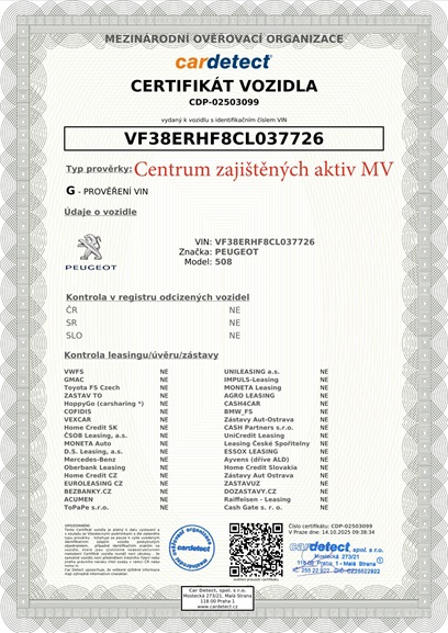Označení modelu | 508 KOMBI 5-DVEŘOVÝ 2.0 HDi 138 FAP BVM 6 |