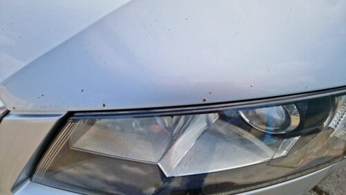 Ojeté, stav odpovídá počtu najetých kilometrů a způsobu užívání vozidla, přední část vozidla posekaná od kamínků + počínající koroze poškozených míst, provozní oděrky, poškození laku i barvy a drobné deformace karoserie po celém obvodu vozidla (viz. foto), nadměrná koroze všech brzdových kotoučů, nesvítí přední obrysová svítilna, nefunkční akumulátor, vozidlo signalizuje závadu motoru, závadu ESP, závadu start – stop sytému a dále signalizuje požadavek na prohlídku a výměnu oleje, počáteční koroze karoserie a exponovaných míst, vyšisovaná ochranná fólie na zadním nárazníku, drobné poškození čelního skla, provozní oděry krytů kol + počáteční koroze disků kol, lokálně zašpiněný a opotřebovaný interiér (stav viz. foto), ve vozidle schází kompletní povinná výbava.