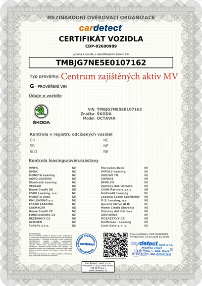 | Ostatní informace | Automobil zajištěn Policií ČR v trestním řízení. Informace o technickém stavu poskytujeme na: 703 485 083, 739 348 917 email: prodej.cenza@mv.gov.cz. José Martího 385/11, 162 00 Praha 6 – Veleslavín. Informace o prodeji a převodu vozidla poskytujeme na: 604 886 016, email: prodej.cenza@mv.gov.cz, Na Pankráci 72, 140 21 Praha 4 |