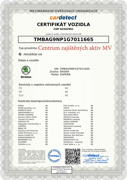 Označení modelu | SUPERB Grt AMB TD88/1.6 M6F |