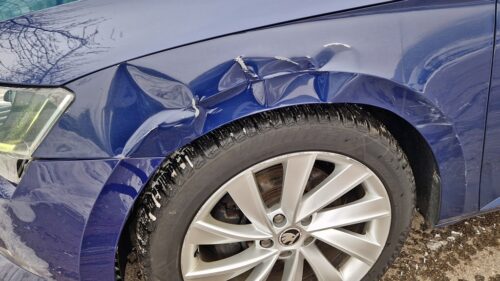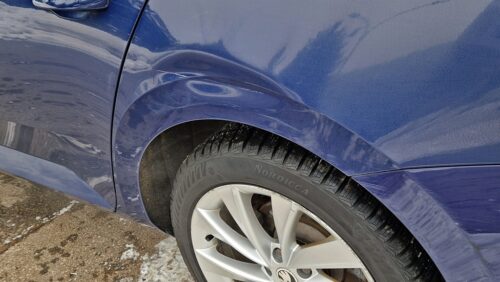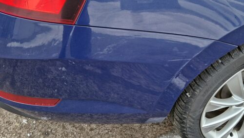 Ojeté, stav odpovídá počtu najetých kilometrů a způsobu užívání vozidla, přední část vozidla posekaná od kamínků, provozní oděrky, poškození laku i barvy a deformace po celém obvodu vozidla (silně poškozený levý přední blatník, přední nárazník – prasklý a neodborně opravený, levý přední světlomet, levé přední dveře, levý zadní blatník, zadní nárazník, víko zavazadlové prostoru, pravý zadní světlomet, a ostatní poškození viz. foto), poškozená pravá zadní pneumatika, poškozené uchycení chladiče, koroze všech brzdových kotoučů, počáteční koroze karoserie a exponovaných míst, vozidlo signalizuje požadavek na servis a prohlídku, dále signalizuje nedostupný Front Assist, snížená kapacita akumulátoru, poškozené čelní sklo, provozní oděrky ALU kol, lokálně zašpiněný, opotřebovaný a poškozený interiér (stav viz. foto), ve vozidle schází kompletní povinná výbava.