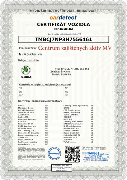 | Vozidlo | ŠKODA SUPERB (3V348X) 2.0 TDI 140kW Style 4×4 DSG |