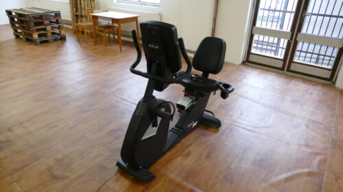 Horizontální rotoped SOLE R92 bez výrobního čísla, nastavitelná sedačka s opěrkou, rotoped má display a stavitelných 10 programů pro ovládání magnetického setrvačníku. Zařízení je použité a funkční.