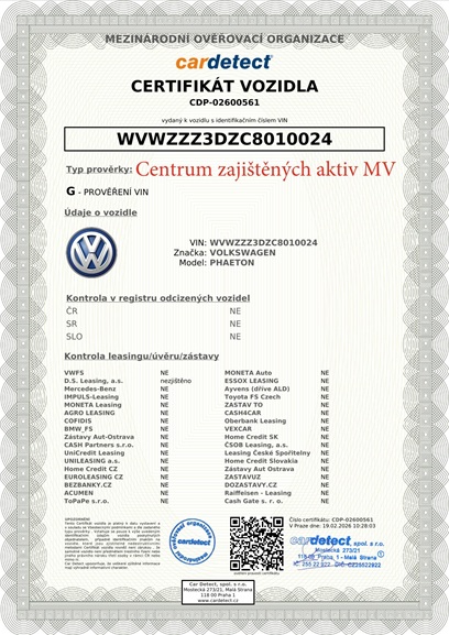 VOLKSWAGEN PHAETON 4MOTION 3,0 TDi/176 kW – registrace Slovensko