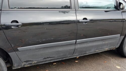 Ojeté, stav odpovídá počtu najetých kilometrů a způsobu užívání vozidla, přední část vozidla posekaná od kamínků, provozní oděrky, poškození laku i barvy a deformace karoserie po celém obvodu vozidla (stav karoserie a poškození viz. foto), hloubková koroze všech brzdových kotoučů, koroze brzdového potrubí, vozidlo signalizuje sjeté brzdové obložení a požadavek na servisní prohlídku, dále vozidlo signalizuje otevřené dveře i přesto, že jsou všechny zavřené, koroze karoserie, nosných částí vozidla a exponovaných míst, vyšisované krycí skla předních světlometů, únik motorového oleje, snížená kapacita akumulátoru, poškozené pravé zpětné zrcátko, poškozená protihluková ochrana motoru, ve vozidle schází pravé zadní sedadlo, znečištěné a lokálně odřené ALU kola, pozvolný únik tlaku u levé zadní pneumatiky, silně zašpiněný, opotřebovaný a poškozený interiér (stav viz. foto), neoriginální autorádio, poškozené vnitřní obložení všech dveří, u sedadel jsou rozdílné látky a vzory čalounění, silně znečištěný zavazadlový prostor, ve vozidle schází kompletní povinná výbava a rezervní kolo či opravná sada pneumatik.