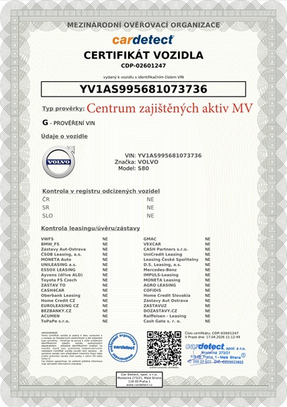 Vozidlo VOLVO S80(124-9913-161) T6 AWD Summum