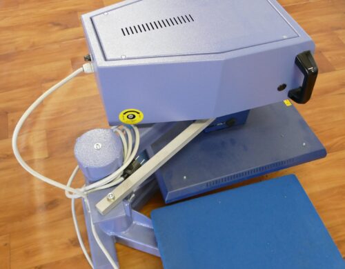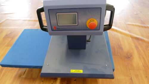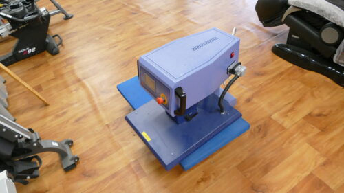 Jedná se o pneumatický tepelný lis pro přenos potisku na textil (trička a pod.) Po sedmi letech je stroj opotřebený, elektronika vyžaduje revizi.